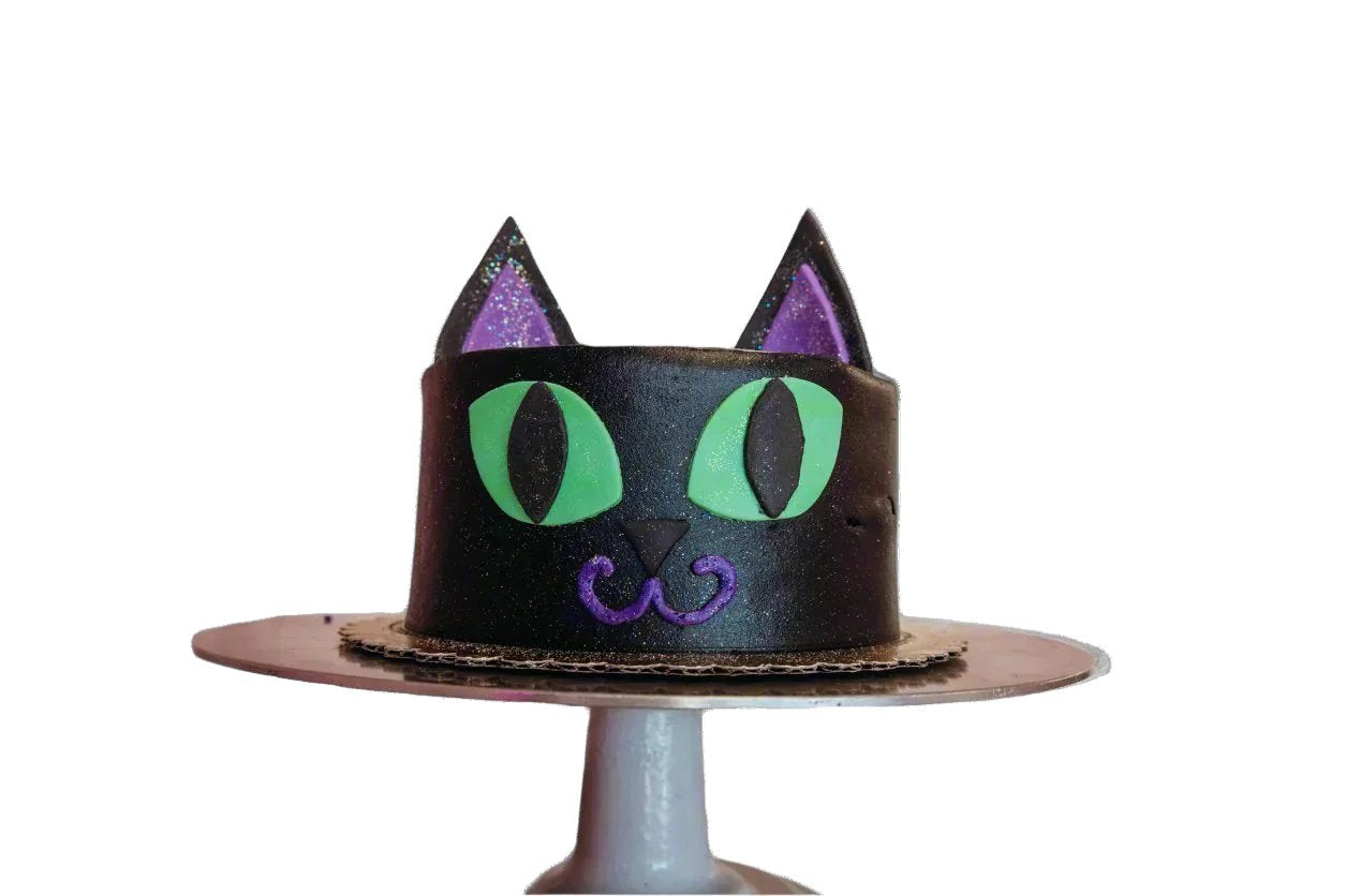 Who says black cats bring bad luck? This cake is all charm, with glowing green eyes, purple accents, and a shimmering touch of edible glitter. Covered in our rich buttercream, it’s both spooky and adorable—ready to be the star of your party. (Shown as 6" round.)